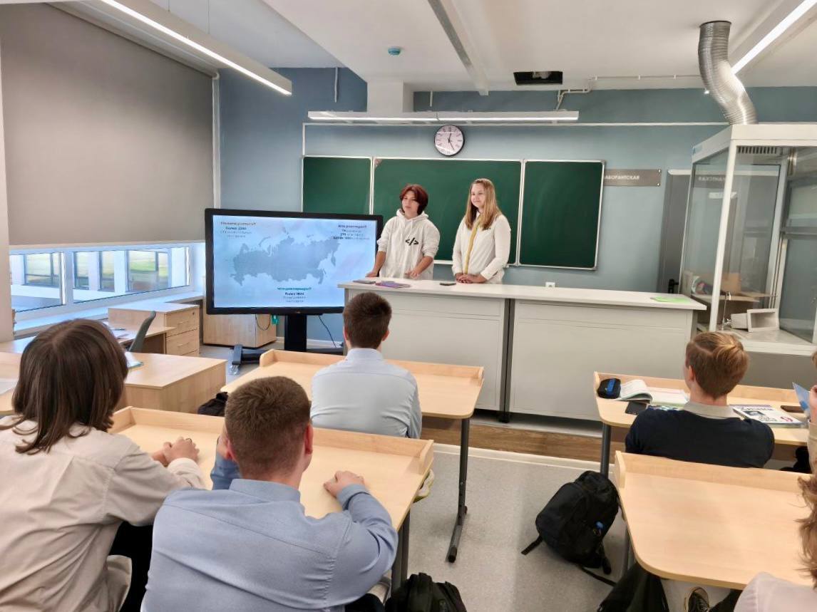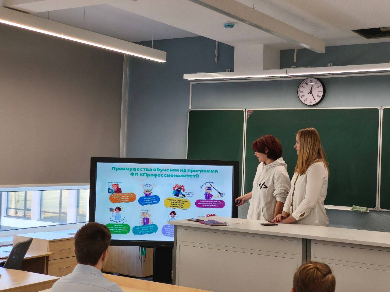Амбассадор специальности 09.02.06 "Сетевое системное администрирование" Мартынюк Наталия и советник директора Мишура Людмила Витальевна посетили школу №7 Долгопрудного, чтобы рассказать о перспективных профессиях и преимуществах программы «Профессионалитет».
